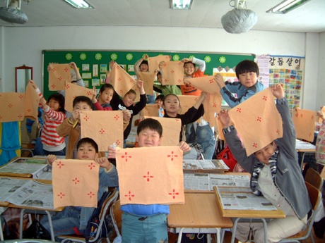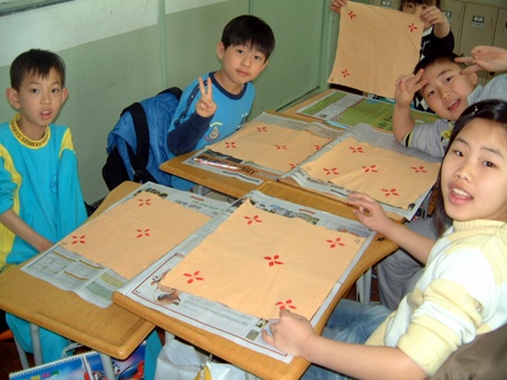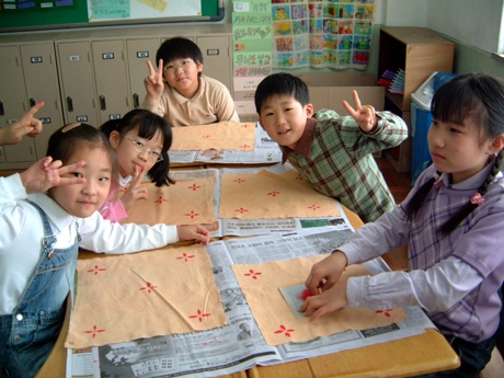 4학년 갈돕반 황토 손수건 무늬 꾸미기